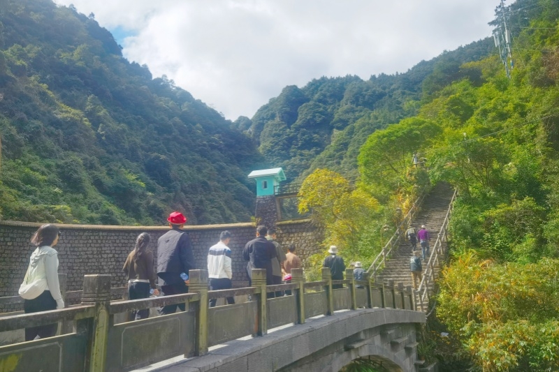 活动首站,职工们来到如诗如画的平阳知音涧。踏入景区,清新空气裹挟着草木芬芳与泥土醇厚气息扑面而来,如温柔双手,瞬间驱散平日工作疲惫。知音涧以“瀑奇、潭碧、山秀”闻名,每处景色皆似大自然精心雕琢的艺术品。职工们或三五成群,漫步蜿蜒小径,赏沿途美景,不时拍照记录;或驻足溪边,对清澈溪水与灵动鱼儿留影,欢声笑语回荡山间。部分热爱自然的职工化身“探索家”,观察林间飞鸟、路边野花,兴奋分享小美好,似回到童年。午餐过后,众人来到最后一站——充满历史韵味的平阳坡南古街。走进古街,仿若穿越时空,回到古老宁静年代。大家沿青石板路前行,每步都似踏在历史脉络上。特色商铺前,古朴茶具散发茶香,传统糕点令人垂涎,职工们停下与店主交流,感受古镇慢生活,时间仿佛也慢了下来。