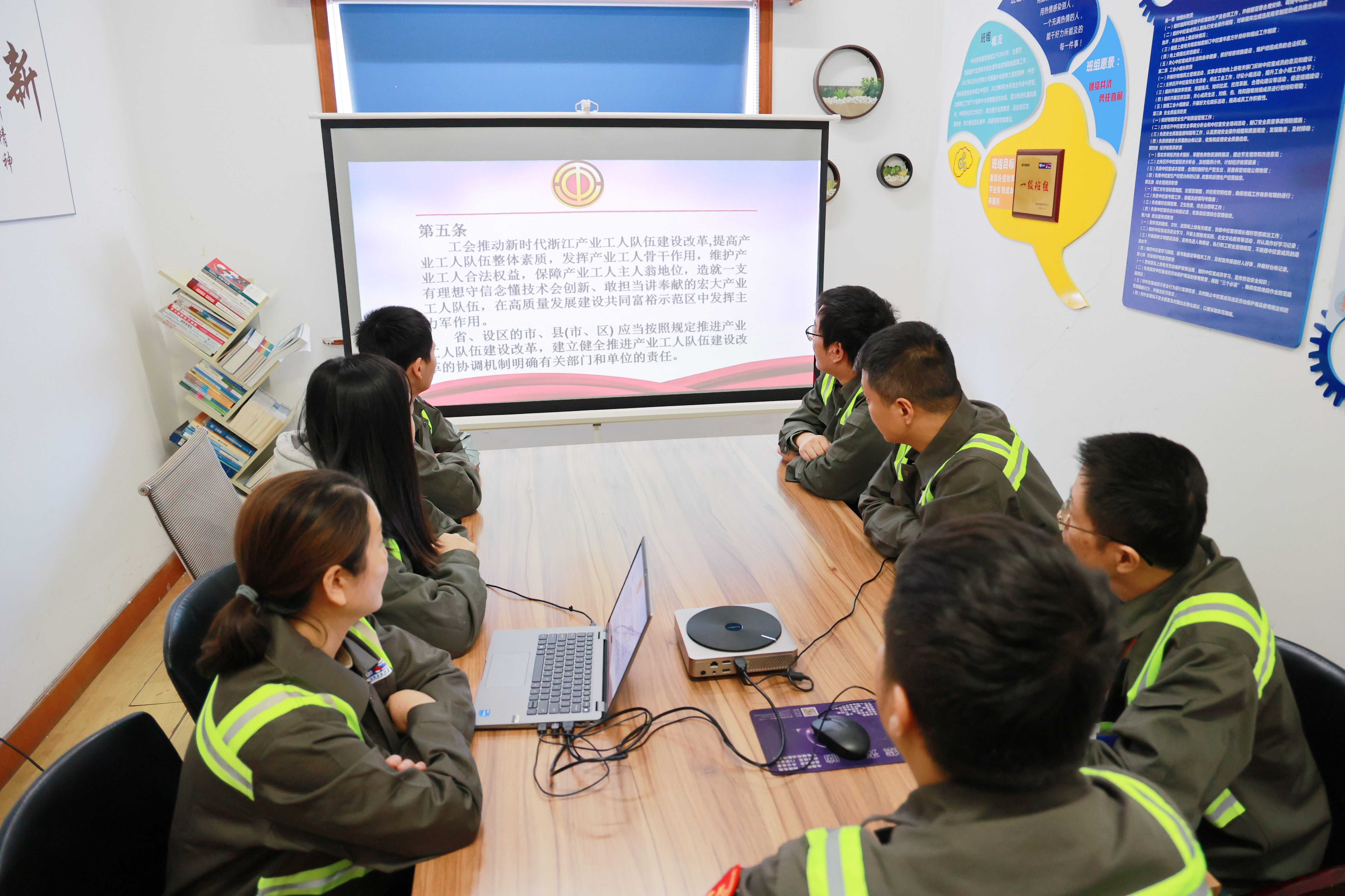 会上,当学习到《实施办法》中关于“工会推动新时代浙江产业工人队伍建设改革”的论述时,班组成员纷纷为之振奋。作为新时代产业工人,班组成员决心不断提升自身素质,坚定信念发挥产业工人骨干作用,建功新时代,为建设世界一流强港贡献“硬核”力量。