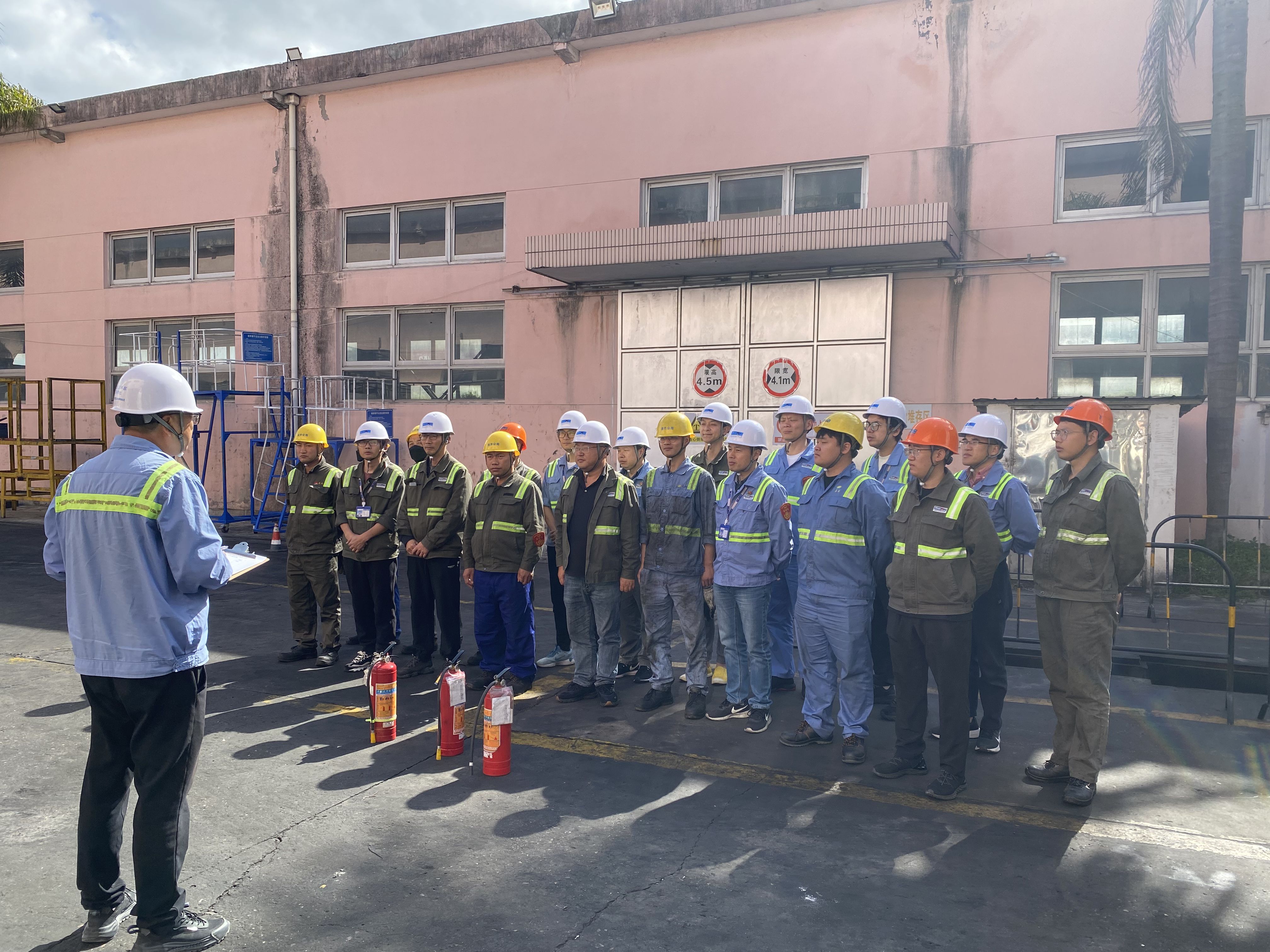 中午12点50分,演练正式开始。模拟场景为机修车间内一名维修人员在进行动火作业时,由于操作不当引发火灾,火势迅速蔓延。维修人员立即大声呼叫示警,现场监管人员马上指挥维修人员拿取灭火器开展灭火自救,同时拨打公司应急电话进行汇报,公司启动应急救援响应,派出救援组赶赴现场,最后在现场维修人员和救援组的配合努力下扑灭火情。车间相邻办公楼相关人员在楼层长的指挥下,低头弯腰捂鼻,有序且迅速地从安全出口疏散撤离到楼下安全集合点。整个演练过程中,员工们反应迅速、配合默契,严格按照应急预案的要求进行操作。