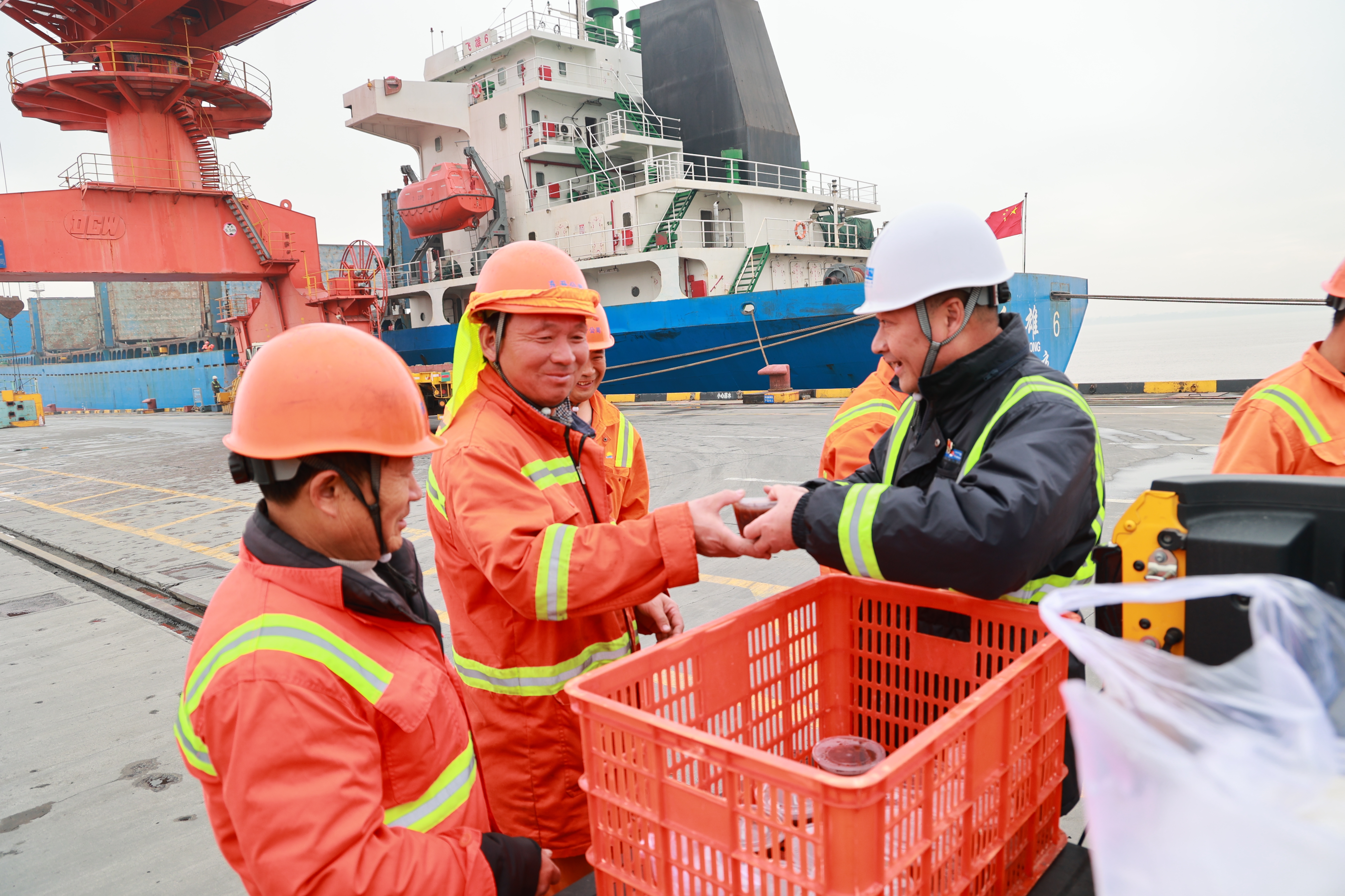 与此同时,公司党总支书记、董事长张春蕾带队深入码头作业前沿,将一碗碗热气腾腾的腊八粥送到正在忙碌的一线职工手中,并与他们亲切交谈,感谢大家在节日里坚守岗位、默默奉献,叮嘱大家在保障作业安全与效率的同时,做好自身防寒保暖。接过热粥的职工们脸上洋溢着幸福的笑容,纷纷表示这份关怀既暖了胃,更暖了心。