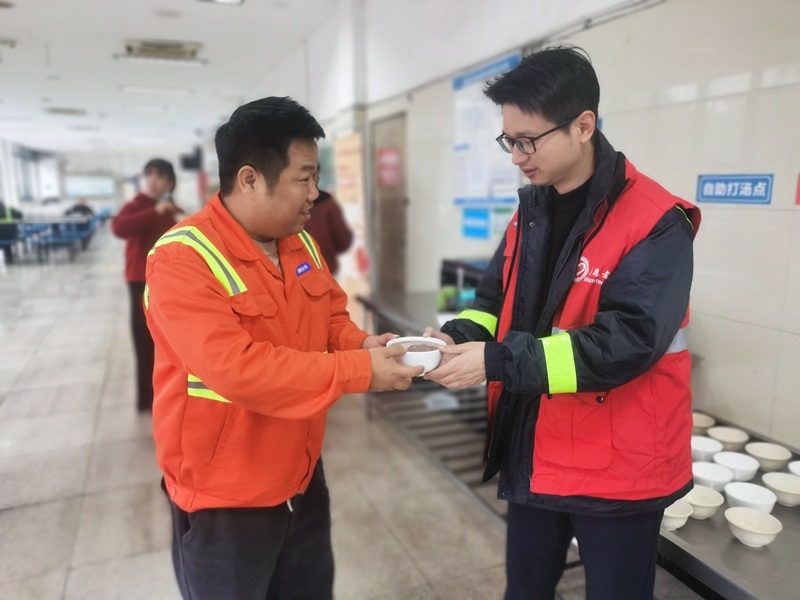 大寒节气刚过,一股强冷空气来袭,1月26日腊月初八,龙湾公司工会精心组织开展了“冬季送温暖、红豆暖人心”主题活动,为在寒风中坚守岗位的一线工人送上热气腾腾的红豆汤。