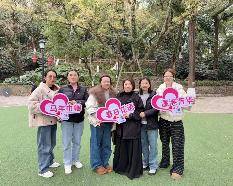 活动现场精心设置了 “马年巾帼”“温港芳华”“春日花语” 3 个特色主题打卡点,配套摆放马年元素、节日祝福等创意手持牌道具,氛围感十足。女职工们自由组队、结伴同行,沿着指定路线穿梭在春日景致中,在各个打卡点创意摆拍,用镜头定格春日美好与巾帼靓丽风采,现场欢声笑语不断,处处洋溢着轻松愉悦的节日氛围。