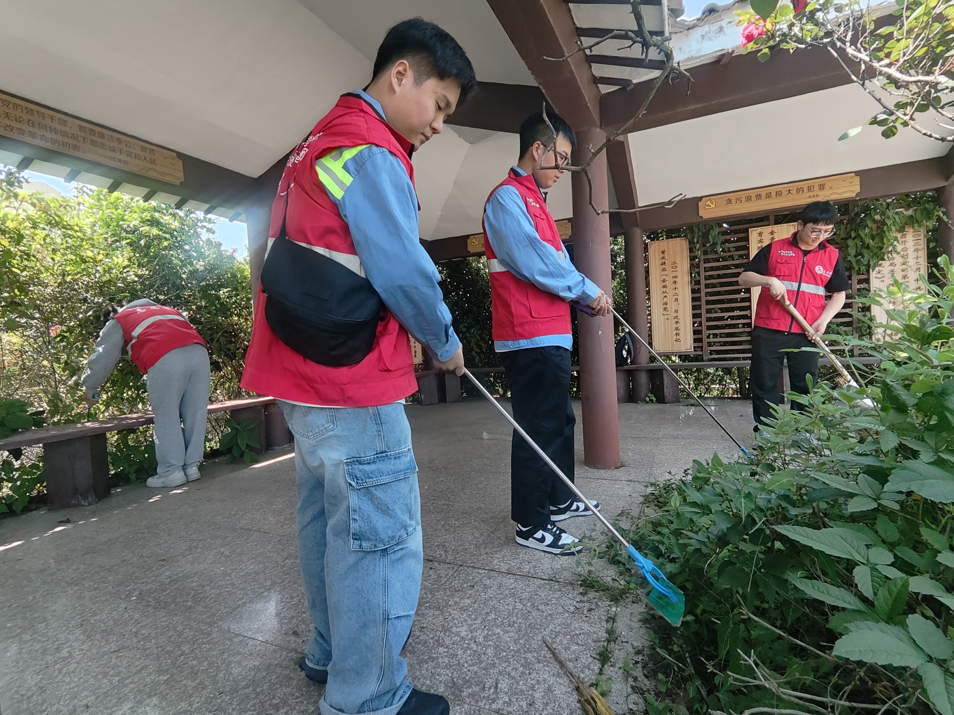 下午,青年们前往洞头老虎山廉洁公园开展实地研学。在廉洁文化长廊和主题展区,大家通过廉洁典故、警示标语等沉浸式学习,进一步强化纪律意识。随后,全体团员面向团旗庄严宣誓,重温入团誓词,铿锵誓言彰显青春斗志。活动最后,青年志愿者们开展环境整治志愿行动,清扫公园垃圾,以公益行动传递绿色文明理念。