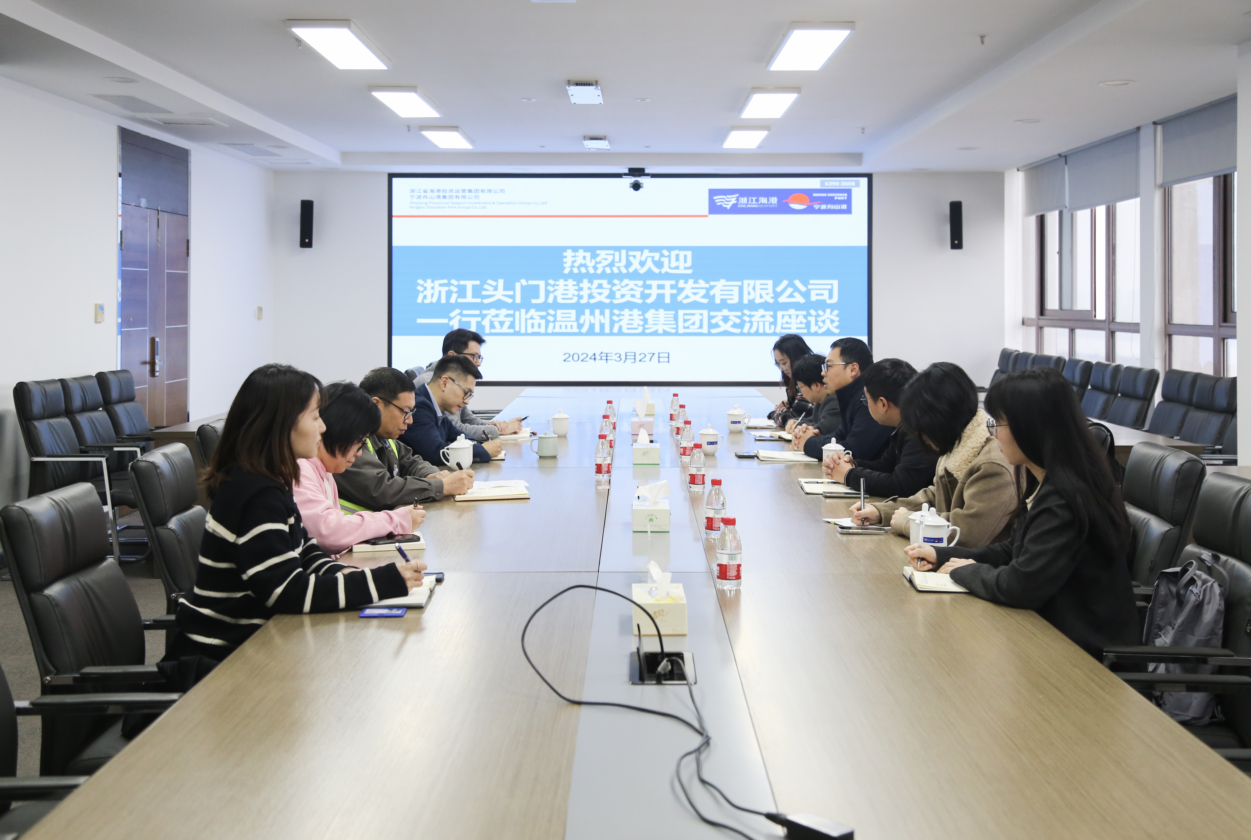 3月27日上午,浙江头门港投资开发有限公司何凯副总经理一行莅临温州港集团交流财务管理工作。公司副总经理陈俊、财务部及企管部相关人员参加活动。