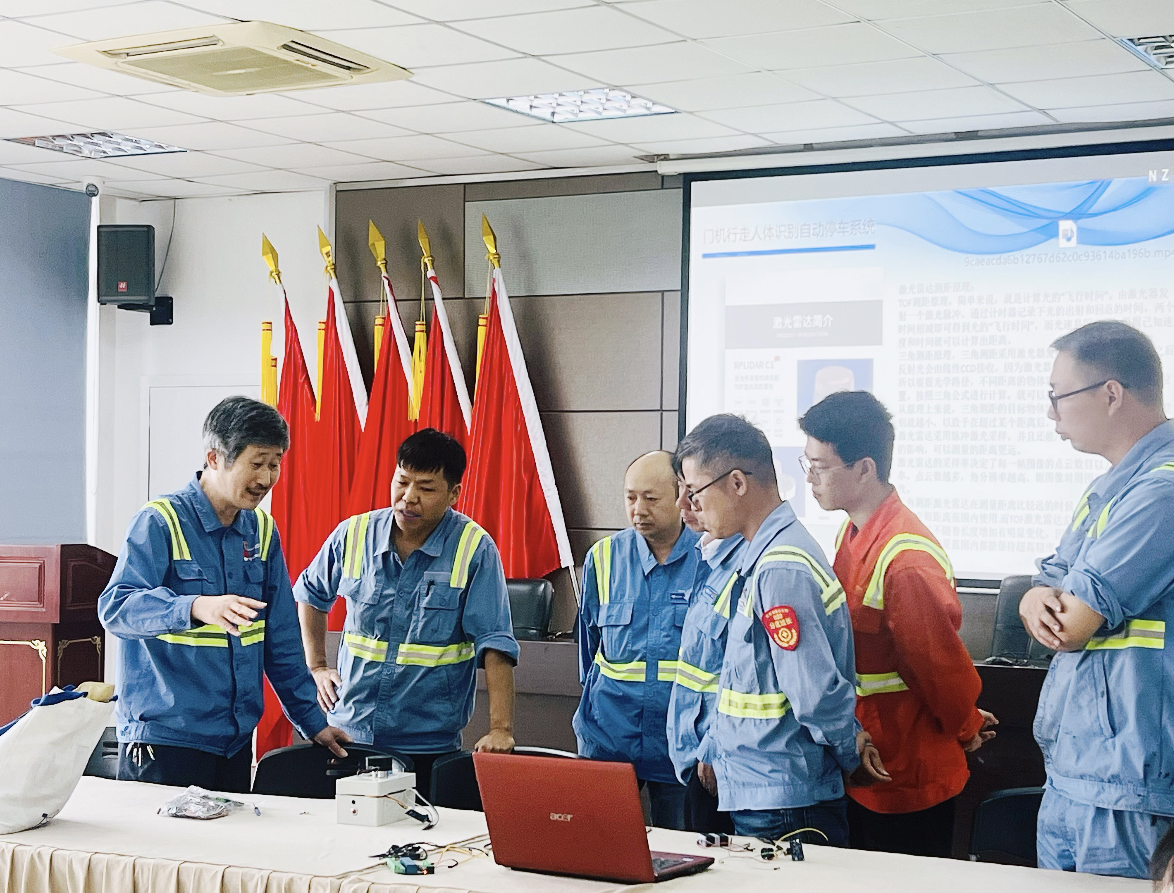 活动伊始,虞成安老师用朴素的语言真挚地分享了他的劳模故事,从平凡岗位上的坚守到创新突破,每一个细节都让人深受触动。他的故事不仅是对劳模精神的生动诠释,更是对我们每一位班组成员的激励和鞭策。随后,龙湾公司课题负责人刘建军详细介绍了本次攻关课题《门机行走人体识别自动停车系统》及其所遇到的难点问题。虞老师针对课题内容进行了深入剖析,并提出了宝贵的指导意见。在场的班组成员纷纷表示,虞老师的建议让他们受益匪浅,这为课题的顺利推进提供了有力支持。