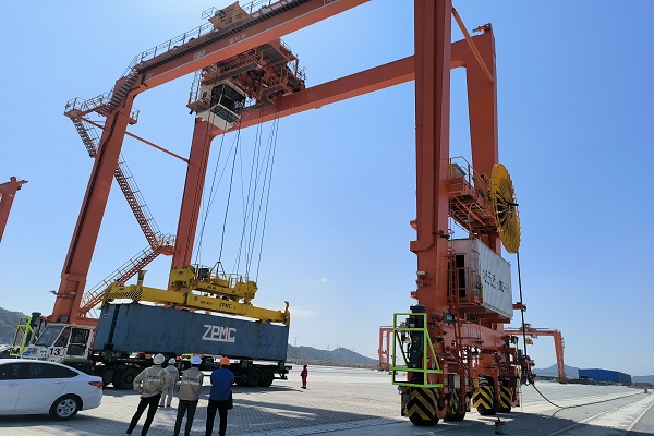 2022年1-9月,状元岙公司集装箱业务发展势态良好,箱量同比增长29.43%。此次到港的2台桥吊最大起重量(吊具下)全程65T,可以满足双重箱作业,满足中大型船舶集装箱作业要求;6台龙门吊最大起重量为50吨,其中小车机构和大车机构采用4台电机驱动,具有更高的运行稳定性。该批设备的正式投产后将有效提升港区集装箱的作业能力。(通讯员:邓晓红 /文 袁建 /摄)